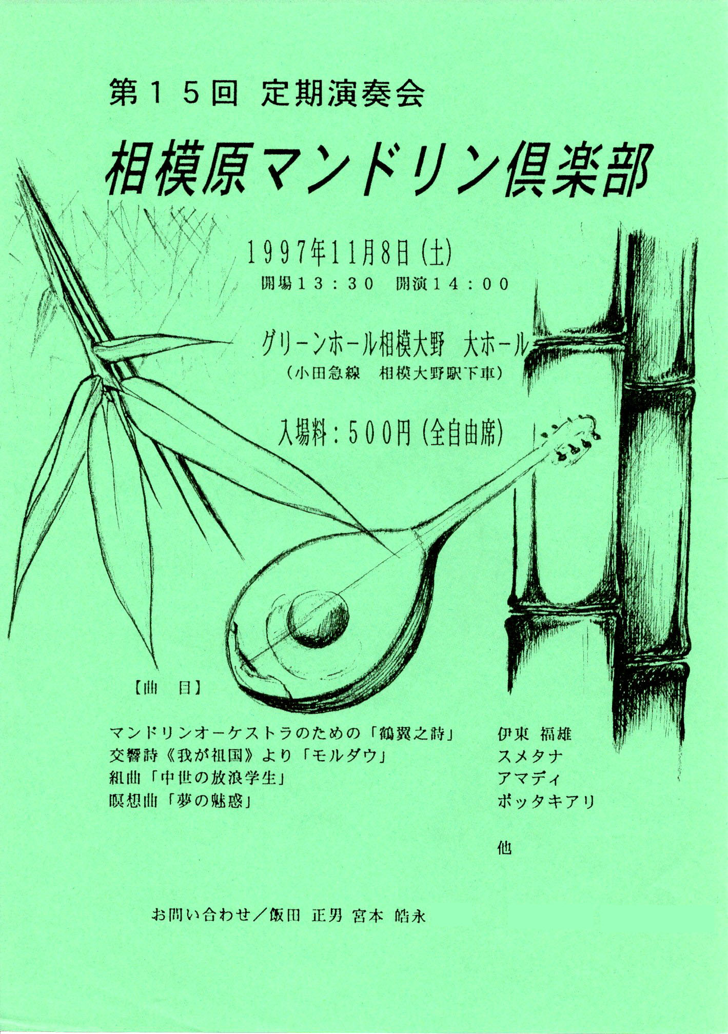 | 第26回神奈川マンドリンフェスティバル 2007.4.29 横浜市栄公会堂 演奏曲目 夢うつつ 指揮 宮本皓永 |