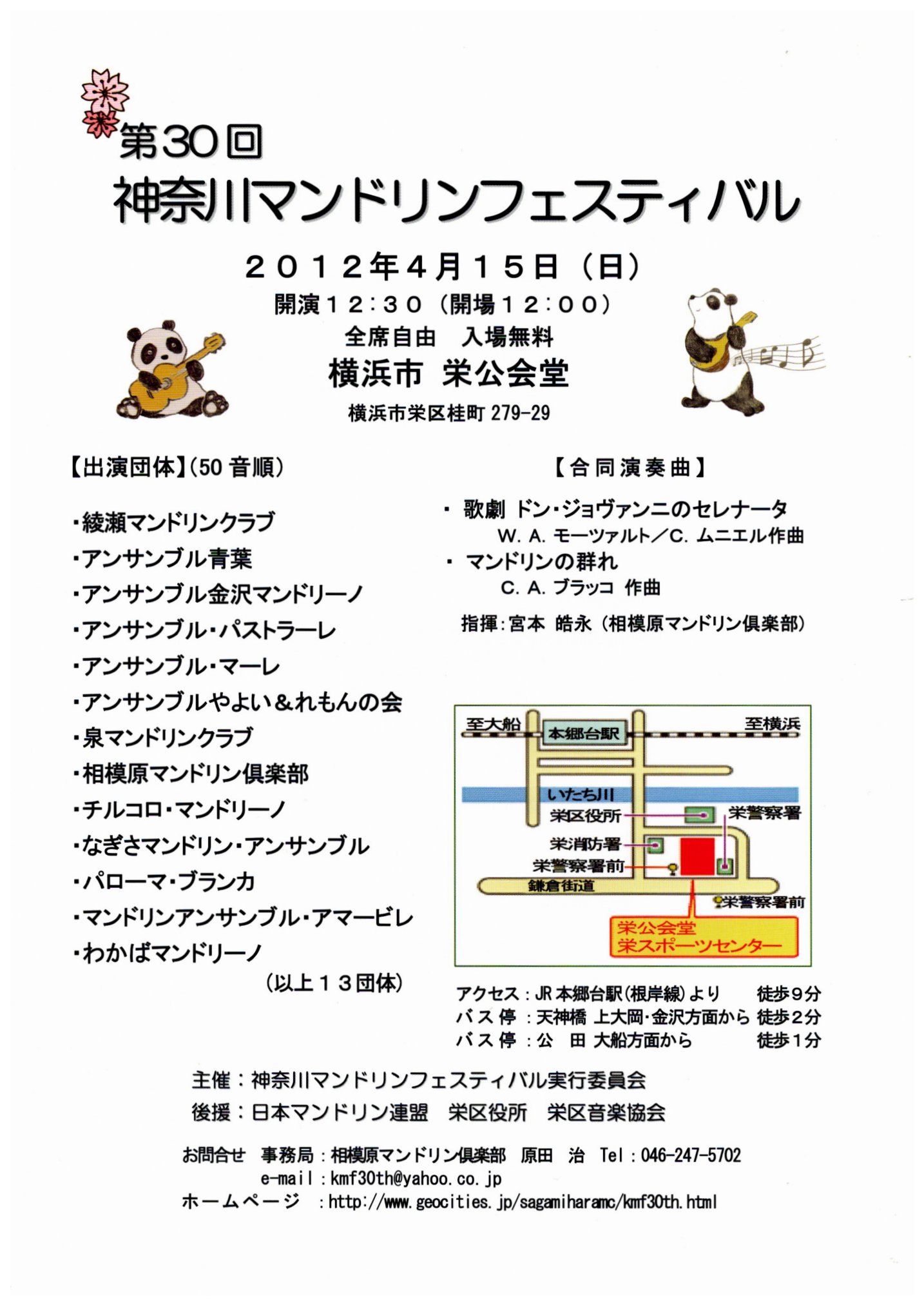 ..... ..... .......... . 主催 第30回神奈川マンドリンフェステイバル実行委員会