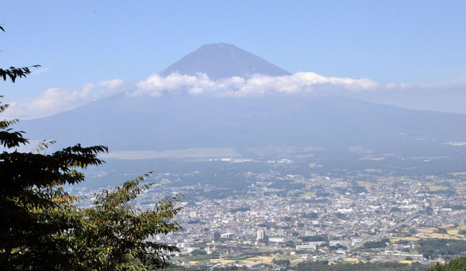 朝10時、峠の展望台から眺める富士山は雄大でした。