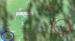 箱根湿生花園から湖尻まで約7km(2時間弱)(○から○まで茶色の点線がルートです。) |