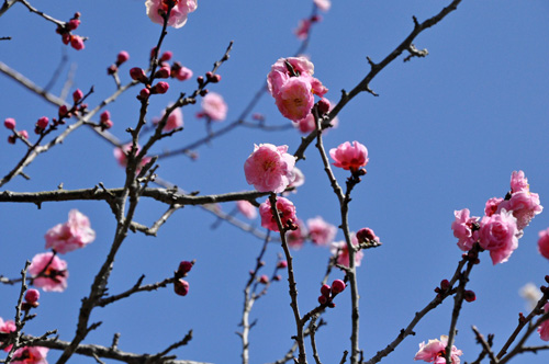 暖かい日差しが降り注いだ3月10日に湯河原梅林(幕山公園)で満開の梅を楽みながら幕山の山頂までハイキングしてきました。ちょうど「梅の宴」開催中で、平日ながら多くの人で賑わっていました。400本の紅梅・白梅が咲き揃い見事な景観でした。その雰囲気がお届け出来れば嬉しいです。 |